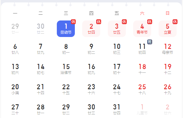 根据《国务院办公厅关于调整2024年部分节假日安排的通知》,2024年劳动节5月1日至5日放假调休,共5天。因为调休5月11日(星期六)正常上班。 明天就是“五一”小长假,外出人员流动增大,加上近期广东气候多变,尤其暴雨时节,各类安全风险上升,在此提醒大家外出游玩注意安全,随时关注天气变化,享受假期愉悦的同时,请务必确保安全再出行! 顺祝大家节日快乐!