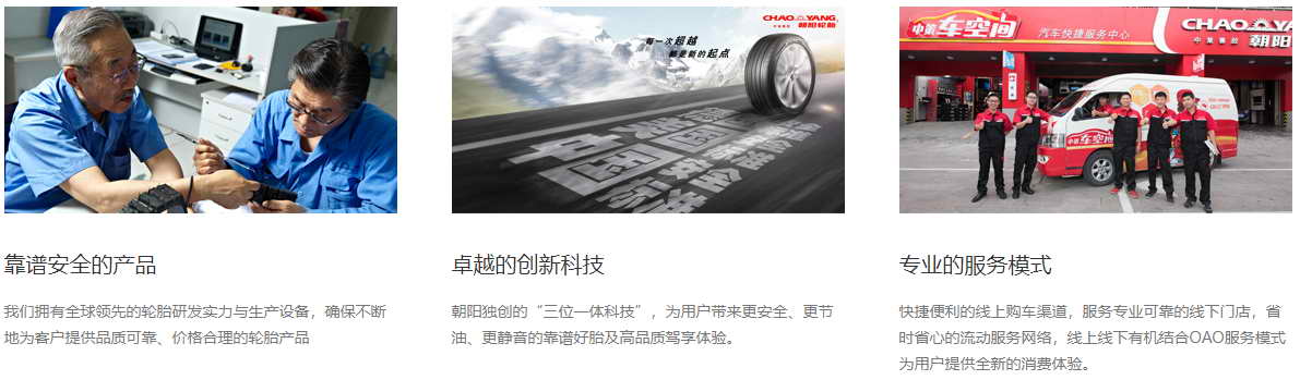 中国汽车零部件百强 朝阳轮胎,是中策橡胶集团股份有限公司旗下品牌之一。目前已经覆盖了乘用轿车胎、商用轿车胎、工程车胎、工业农业车胎及两轮车胎等领域。 朝阳牌全钢子午胎荣获“中国名牌”称号,通过美国环保署Smartway 认证,达到了国际先进水平。 可持续发展 中策橡胶集团致力于为社会创造价值,创新科学技术,追求生产安全、绿色、有价值的轮胎,为全球的消费者带来更多的产品及服务选择。 除此之外,中策橡胶集团积极参与可持续的企业社会责任项目,在全球范围内开展人文关怀的公益活动。 社会责任 对公益事业的关注,是中策作为企业,对世界的责任。 中策旗下朝阳的“微笑行”系列公益,为众多远方患病少儿带去微笑和希望。 坚持以人为本的价值观 中策橡胶集团坚持把员工的健康和安全放到首要位置,尊重和平等对待每一位员工,维护和保障员工的各项合法权益, 努力解决员工最关心、最现实的问题,将发展成果更多、更公平地惠及全体员工。 公司地址:浙江省杭州市钱塘区1号大街1号 服务热线:400-888-9870(工作日8:00-16:30) |