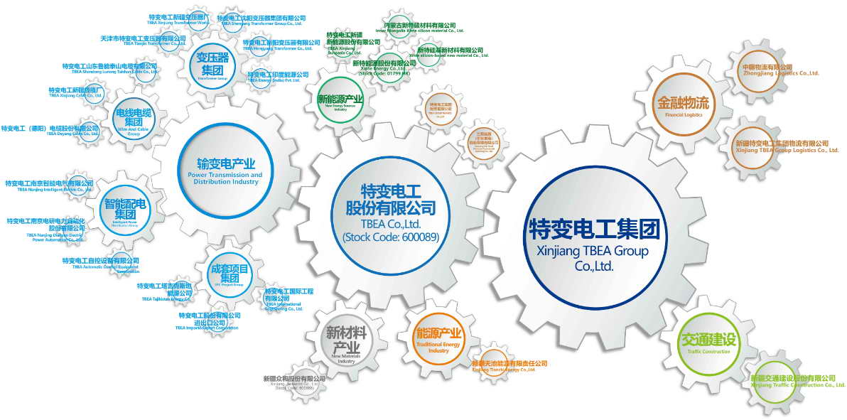 特变电工是为全球能源事业提供绿色清洁解决方案的服务商,公司致力于“绿色发展、低碳发展”,是国家级高新技术企业集团和中国大型能源装备制造企业集团,由全球24个国家2.4万余名员工组成,培育了“输变电高端制造、新能源、新材料”一高两新国家三大战略性新兴产业,成功构建了特变电工(股票代码600089)、新疆众和(股票代码600888)、新特能源(股票代码HK1799)三家上市公司,已发展成为我国输变电行业核心骨干企业,多晶硅新材料研制及大型铝电子出口基地,大型太阳能光伏、风电系统集成商,国内拥有18个制造业工业园,海外建有3个基地。变压器年产量达2.4亿kVA,光伏EPC装机总量近18GW,均位居全球前列。特变电工集团综合实力位居世界机械500强第228位、中国企业500强第336位、中国民营企业500强第155位、在首次发布大企业创新100强排名第32位,连续四年上榜ENR全球百强工程承包商。“十三五”期间累计在新疆投资超500亿元,上交税金100多亿元,直接间接提供就业10万余个。